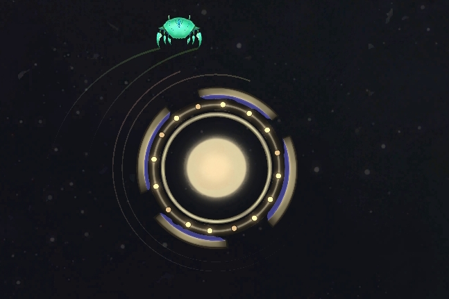 One of the most important challenges I faced was conveying visually that the star's gravity affects the player ship. Though it is not the most effective method, I added little lines (pretend comet trails) orbiting the star in the direction that the player is expected to orbit the star.