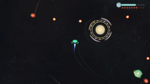 The fire rate was initially set to be lower than what was set for the jam version. It was eventually increased so that the player would be able to hit their intended target with relatively less of a challenge considering there is no crosshair and the ship is turning and moving at its given rate.