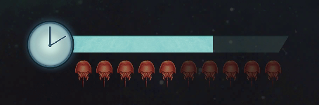 I considered conveying time/countdown through the use of objects within the environment. One of the ideas was to set twenty lights on the dyson sphere, and have each one go on or off every second. However, this did not feel appropriate enough for the Watsonion perspective. It felt easier to comprehend the time in a relatively long bar. After trying out a few variations in size and frames, I chose to go with a minimalist bar to keep it clear, and made the edge a little lean so it did not feel like a default item from the game engine. I used the menu buttons' background as fill so that it did not feel plain. A little clock icon was added beside the bar to help convey what the bar represented.